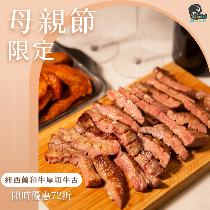 指定商品,母親節限時優惠!購買1組薄切牛舌,加購厚切牛舌1組,厚切牛舌8折再折40元!